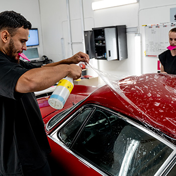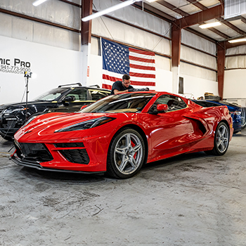 Our 14,500 square foot facility is designed perfectly for the protection services that we offer. Our showroom is a great place to plan your next protection package. Have peace of mind knowing that while your vehicle stays with us, it’s in good hands. On the exterior of the facility you will notice a 6 foot chain link fence with barbed wire. Additionally, we have a fully active and monitored security system that covers glass breaks, motion and door sensors. We will keep your most prized possessions safe from the start to the finish.